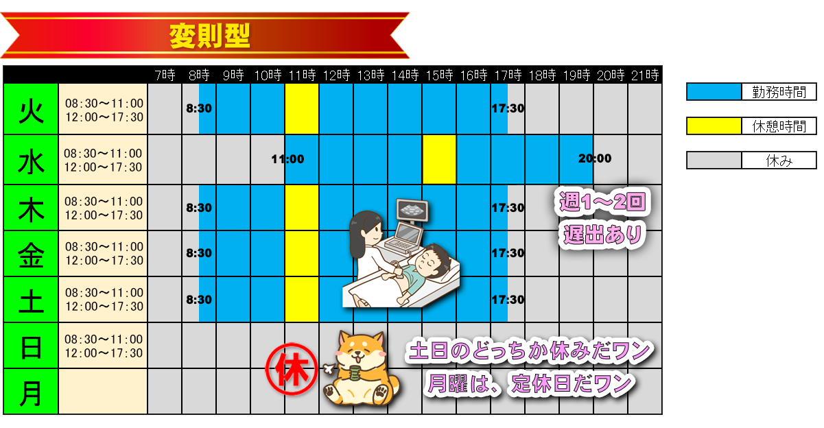 ・平日 週1~2回、11:00~20:00の遅出勤務があります。